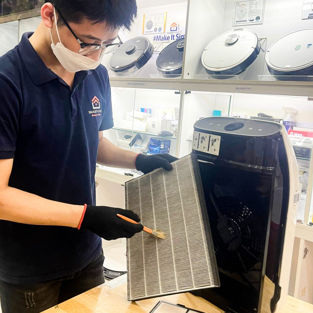 Bước 4: Sau khi sửa chữa xong kỹ thuật viên sẽ kiểm tra lại để chắc chắn rằng Máy Lọc Không Khí đã hoạt động ổn định.